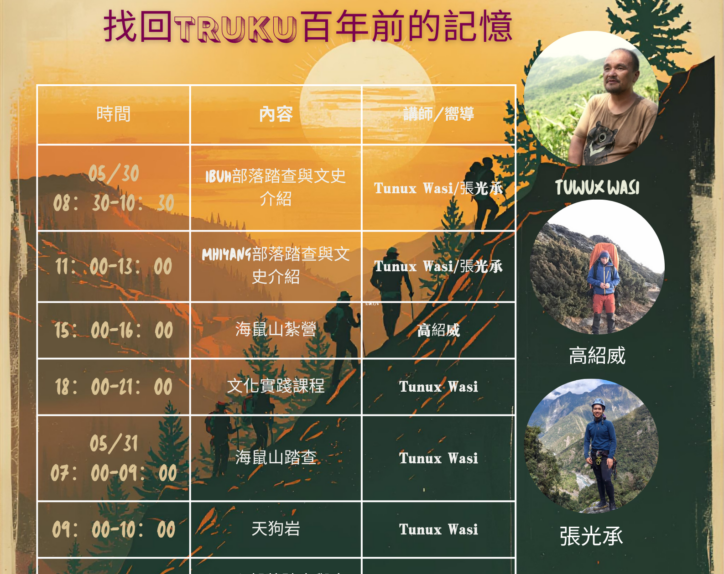 海鼠山周遭部落踏查招生簡章 找回 Truku 百年前的記憶 Alang Duyung(陀優恩)、Mhiyang(馬黑洋)、Ibuh(依柏厚