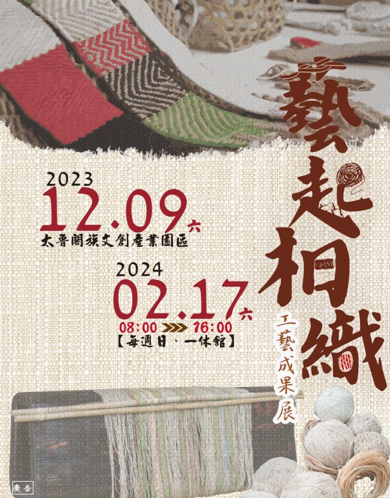 文教 藝起相織-工藝成果展 2023 年 12 月 1 日2023 年 12 月 4 日 qtai2022 同禮部落文化實踐團線上報名連結 一個傳承的起點,一份傳統工藝的堅持,誠摯地邀請您走進秀林鄉,感受來自祖先的技藝智慧。 這個投票已截止!請問2024中華民國總統大選你(妳)支持誰?賴清德—蕭美琴侯友宜—趙少康柯文哲—吳欣盈370 answersVote 展覽日期:112/12/09(六)~112/02/17(六)展覽時間:週二至週六,08:00~16:00展覽地點:太魯閣族文創產業園區 這個投票已截止!請問第十一屆山地原住民立法委員你(妳)支持誰?伍麗華孔文吉盧縣一胡黃廣文高金素梅張子孝Savungaz Valincinan高畹芯林世偉林 果458 answersVote 這個投票已截止!請問太魯閣國家公園內的傳統部落你最想要去的是哪個部落?Swsal蓮花池Kbayan古白楊Qlabaw克拉寶Sdagan西拉岸Slaqu quni 西拉歐卡厚泥Skadang Huhus 大同大禮天狗岩周遭部落Towsey 陶賽(梅園竹村)Tpuqu 陶樸閣Rusaw 洛韶Skahing 沙卡亨(木瓜溪流域)Btakan巴達岡(和平溪上游)其他傳統部落105 answersVote Share Facebook Twitter Pinterest Linkedin