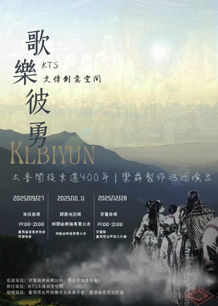 文教 活動資訊 KlbiYUN歌樂彼勇-太魯閣族東遷400年-樂舞製作巡迴演出 2025 年 9 月 9 日2025 年 9 月 15 日 qtai2022 為彰顯太魯閣族先祖於400年前自Truku Truwan東遷的歷史,藉由樂舞劇的形式重新形塑於當代族人與主流大眾的面前,KTS文傳創意空間於9月27日、10月至11月、12月28日分別於南投基督長老教會莎都教會、花蓮縣台灣原住民族文化館以及各部落巡迴(時間由粉絲專業公告之),辦理KlbiYUN歌樂彼勇-太魯閣族東遷400年-樂舞製作巡迴演出。 KTS文傳創意空間負責人Tumun Piteyru表示,我們計畫在2025年9月至12月間,進行一系列小品巡迴演出,演出內容為《歌樂彼勇》(Truku語,為太魯閣族東遷路徑中奇萊山之地名),聚焦太魯閣族從南投遷徙至花蓮的歷史,以及族群的生活文化。第一場演出選在南投Truku村,與賽德克青年會合作,象徵太魯閣族東遷的起點。演出內容結合東遷神話短劇、古至今歌謠演變、傳統樂舞樂器、當代舞、饒舌街舞等多元元素,用行動象徵著時代的變遷與不變的Gaya核心。 本劇採用團員共編,KTS成員來自太魯閣族的各部落,我們有著共同的故事,共同的理念,因此共同孕育誕下「歌樂彼勇」樂舞小品製作。 KTS文傳創意空間負責人Tumun Piteyru指出,劇情內容從葛都桑音樂工作室田野採集到文面老人口述的逐鹿故事pada hidaw的傳說,直至Truku 大舉遷徙克服天險與適應環境的肢體演化,在用舞蹈及歌聲呈現東遷後到國民政府的變遷故事,直至現今與主流接軌也仍不忘本的Gaya核心,整場演出傳遞的是400前至今太魯閣族亙古不變的堅毅與靈觀。 Share Facebook Twitter Pinterest Linkedin