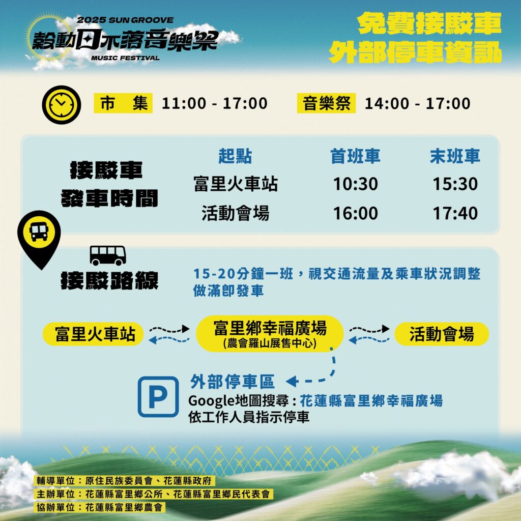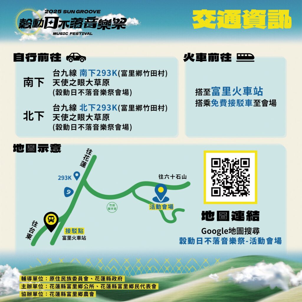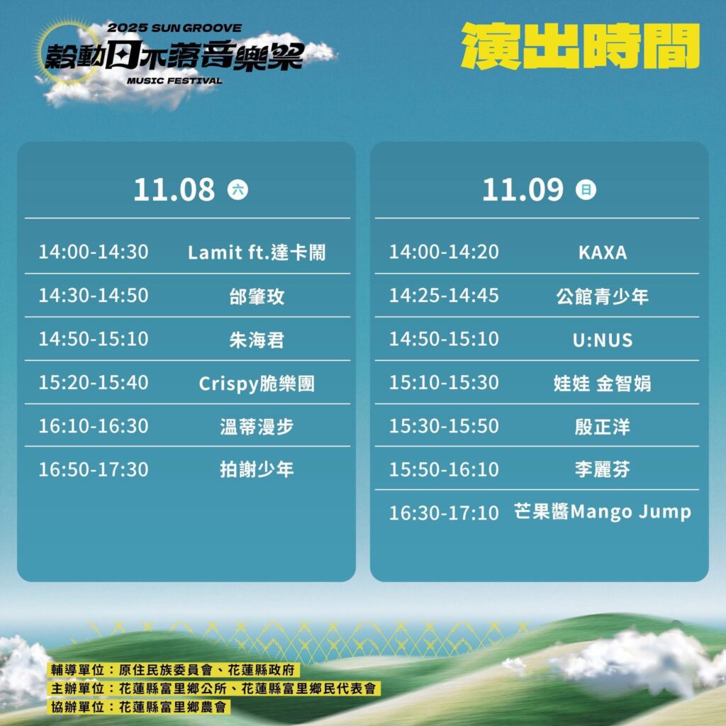 地方 產業 2025穀動日不落音樂祭 本週末登場! 2025 年 11 月 6 日2025 年 11 月 24 日 qtai2022 黃金稻浪搖曳・縱谷音樂響起 富里天使之眼大草原 準備開唱啦!11月8日(六)~11月9日(日)花蓮富里鄉竹田村 台九線293K 往六十石山 全程免費入場! 邀你一起在金黃稻浪間聽音樂、逛市集、享秋意 活動時間:上午11:00~下午5:00現場結合 音樂展演 + 特色市集最Chill的秋收氛圍,最自然的稻浪背景 演出卡司超豪華!拍謝少年、溫蒂漫步、芒果醬 Mango Jump、Crispy 脆樂團、公館青少年、U:NUS、KAXA、殷正洋、朱海君、娃娃金智娟、李麗芬、邰肇玫還有在地的 Lamit 樂團 ft. 達卡鬧 兩天連續開唱、風格多元、精彩不斷 現場限定「加倍農產品體驗券」登場!只要現金100元就能兌換200元體驗券 發放時間:每日11:00~15:00(數量有限,發完為止)體驗券可於市集攤位使用,不可兌現或找零喔~ 接駁服務超方便!搭乘地點:富里火車站富里鄉幸福廣場(農會羅山展售中心)每日 10:30~17:40 約15~20分鐘一班建議多加利用接駁或共乘,減少交通壅塞小提醒:現場為戶外草原+斜坡地形,建議攜帶防曬用品、水壺、野餐墊、注意防蚊。若人潮眾多,為安全起見,請配合現場人員引導~ 富里鄉長 江東成表示 「穀動日不落音樂祭」以土地為舞台、以音樂為語言,展現花東縱谷最純粹的魅力邀請大家在秋日週末相約天使之眼,一起感受稻浪與旋律交織的美好時光更多活動資訊搜尋「花蓮穀動日不落音樂祭」 或 「富里鄉公所」官方粉絲專頁 Share Facebook Twitter Pinterest Linkedin