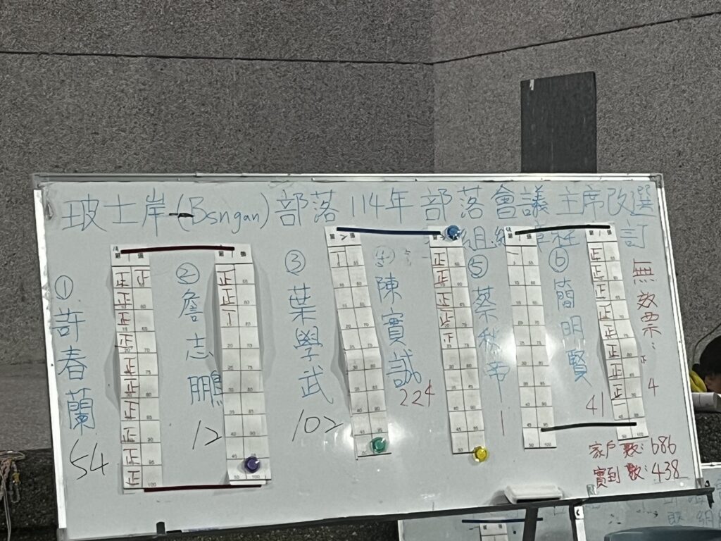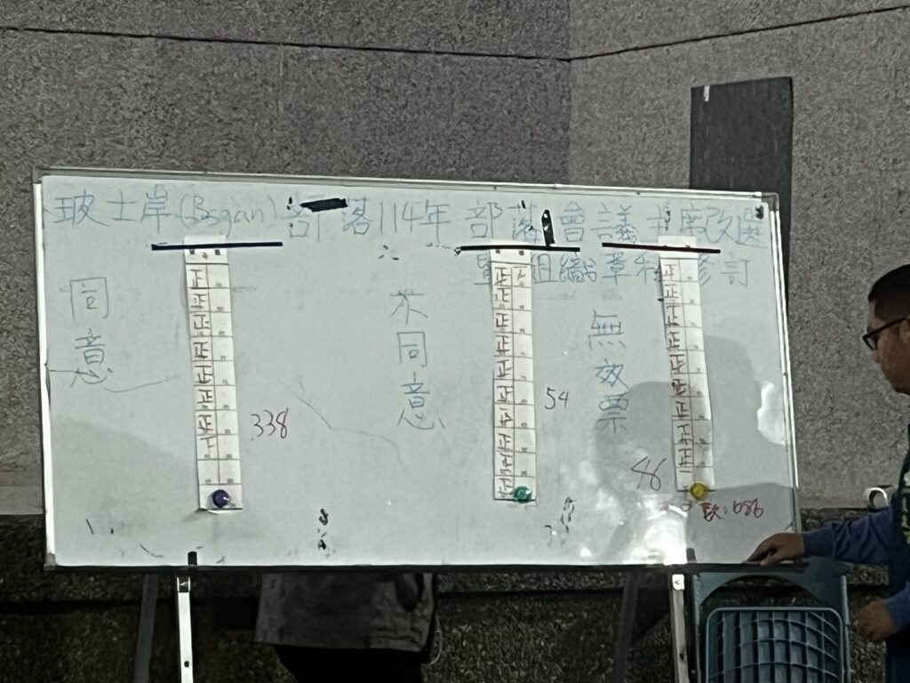 地方 最新消息 綜合 玻士岸(Bsngan)部落第五屆部落會議主席選舉結果出爐! 2025 年 12 月 8 日2025 年 12 月 8 日 qtai2022 部落會議是依據《原住民族基本法》規定,原住民族部落設置的自治最高決策機構,負責訂定章程、議決公共事務及同意事項(如土地開發)。它以部落成員為基礎,透過正當程序凝聚共識,決定部落的發展方向和自治事項,是部落行使權力、自主發展的關鍵機制,為此玻士岸(Bsngan)部落於7日,在富世多功能集會所辦理「114年度第五屆部落會議議主席改選暨組織章程修訂」。 經過4個小時的投票玻士岸(Bsngan)部落家戶數為686戶,領票數為438票,玻士岸(Bsngan)部落會議主席得票數為,1號許春蘭54票、2號詹志鵬12票、3號葉學武102票、4號陳實誠224票、5號蔡秋帝1票、6號簡明賢41票、無效票4票。陳實誠以超過50%的得票率高票連任第五屆玻士岸(Bsngan)部落部落會議主席。 而另個重要的議案為修訂玻士岸(Bsngan)部落組織章程一案,案由如下:玻士岸(Bsngan)部落114年第四屆部落會議之大會召集開會組織章程修訂如下修訂說明如下: 1.第三章 組織集幹部、第九條新修訂增加版:各部落耆老遴選或選舉產生,有提案權、發言權及表決權。2.第三章 組織集幹部、第十條修正版:主席任期改為4年一任。3.第八章 附則、第二十七條修訂增加版:四、於LINE或FB公開平台發表污辱性言論,對幹部或它人造成身心不悅、名譽毀謗等情事發生時,經部落會議幹部聯繫會議3/2幹部同意者,應予於警告或停權(最多得停權一年)五、所有幹部一年內無故缺席會議二次次數以上及一年累積請假4次沒來,經部落會議幹部聯繫會議3/2幹同意者,應予於警告或停權(最多得停權一年)。六、部落認同與歸屬條例,規範遷徒族人之身份認定予歸屬方式·例如本村會員原居住地為Ajug部落,但實際淵源部落為大同部落,可以認同於大同部落,且未來只能在大同部落投票,不得至其他部落投第二次票。第七條、經主席團決議解任(罷免)後,不得再參選既有部落之任何選舉或被推派。 經投票表決後,同意票338票、不同意票54票、無效票46票,領票數438票,玻士岸(Bsngan)部落同意修訂上開修訂組織章程。 Share Facebook Twitter Pinterest Linkedin